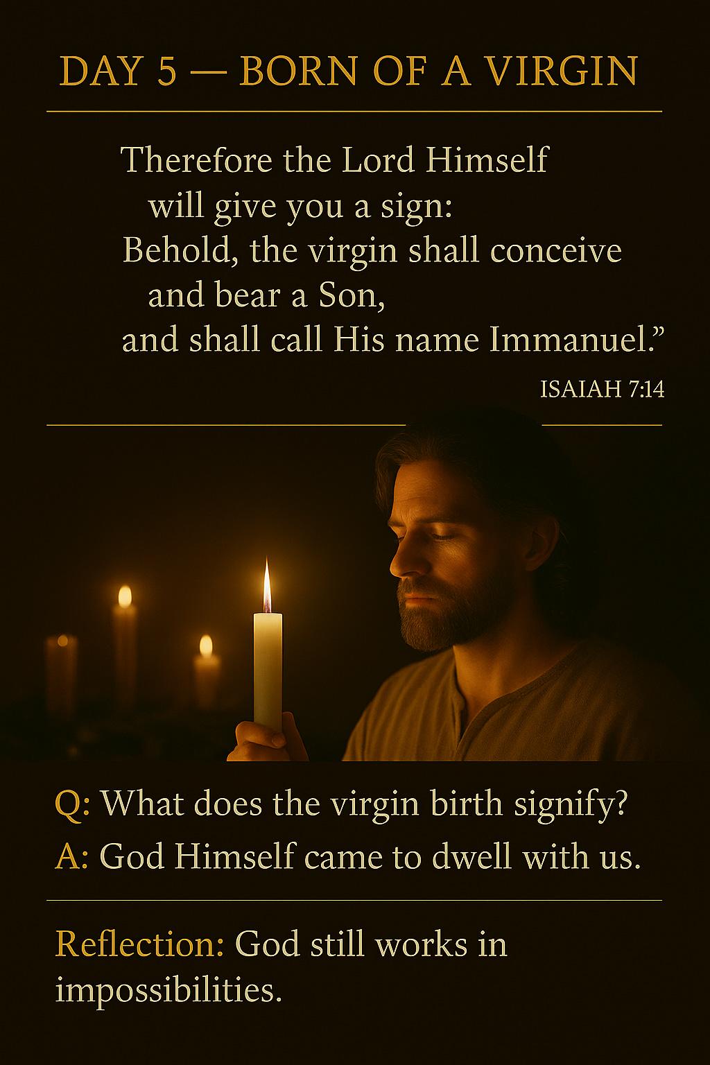 Isaiah 7:14 foretells a miraculous sign that a virgin would conceive and bear a Son called Immanuel, meaning “God with us.” The virgin birth reveals that Jesus’ arrival is fully divine, initiated by God Himself to dwell among His people.