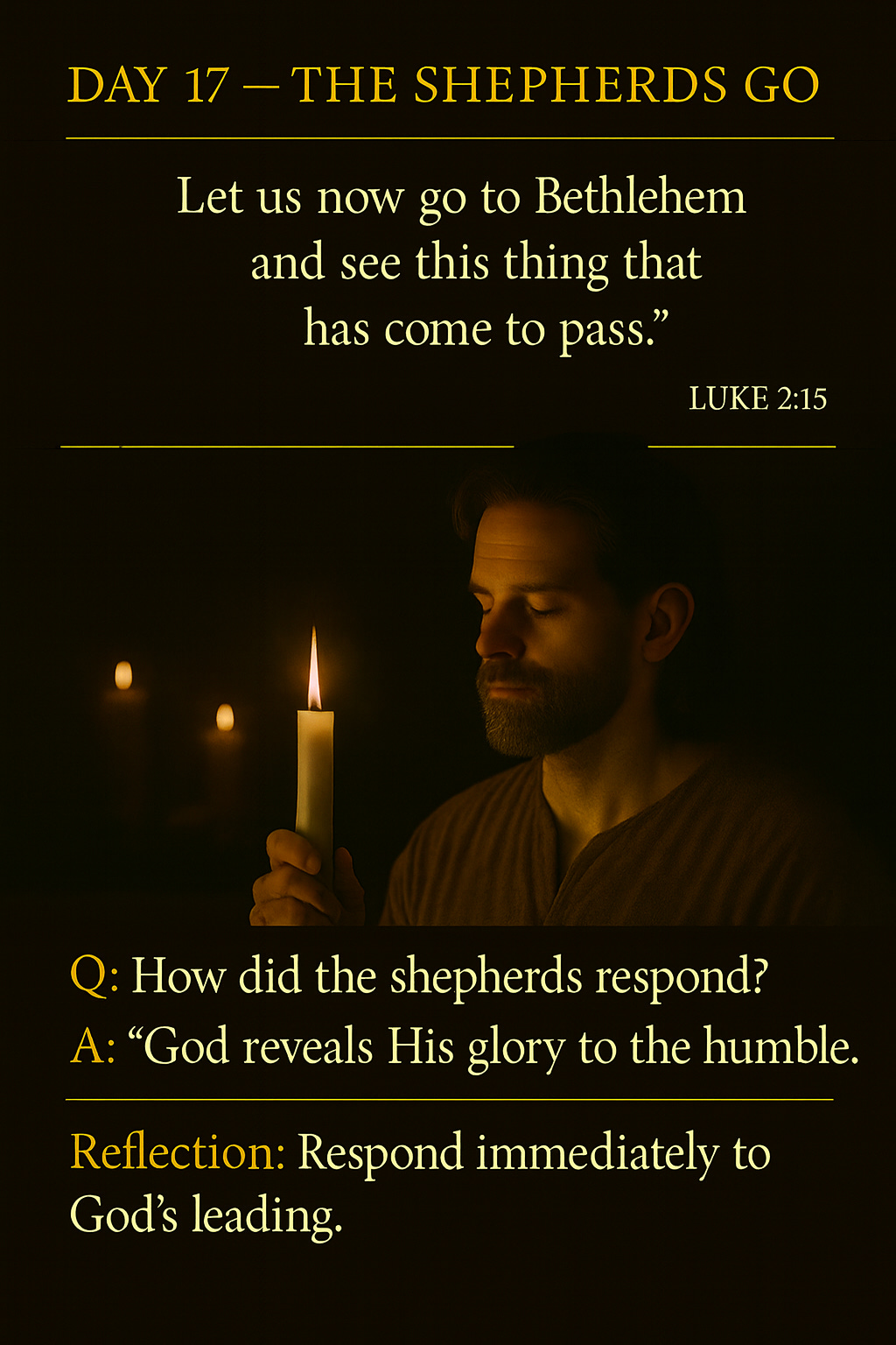 When the angels departed, the shepherds didn’t hesitate; they urged one another to go straight to Bethlehem and witness the miracle God had revealed. Their immediate response shows both humility and obedience to God’s message.