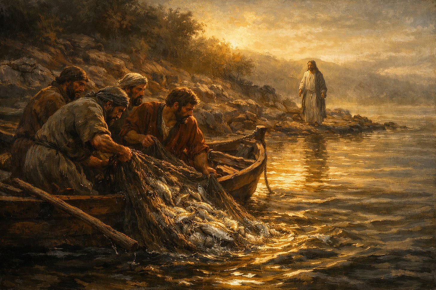 After the resurrection, the disciples return to what they know, fishing. They labor through the entire night, applying their experience, skill, and effort, yet catch nothing. The nets remain empty. The work is real, but the result is absent. At daybreak, Jesus stands on the shore, though they do not yet recognize Him. He speaks a simple instruction. “Cast the net on the right side.” It is not a complex strategy. It is not a change in profession. It is a call to trust and obey.